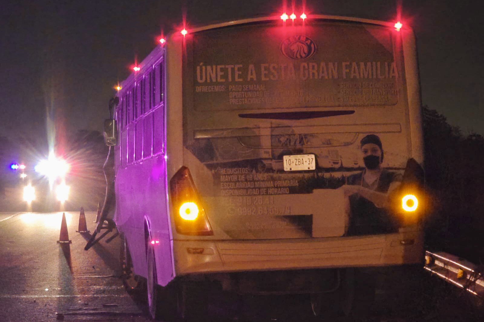 El autobús había dejado a trabajadores en una empresa de algún municipio y se dirigía hacia Mérida, pero de pronto se le apareció de frente el Tsuru. El operador del camión no pudo maniobrar y se dio un encontronazo de frente.