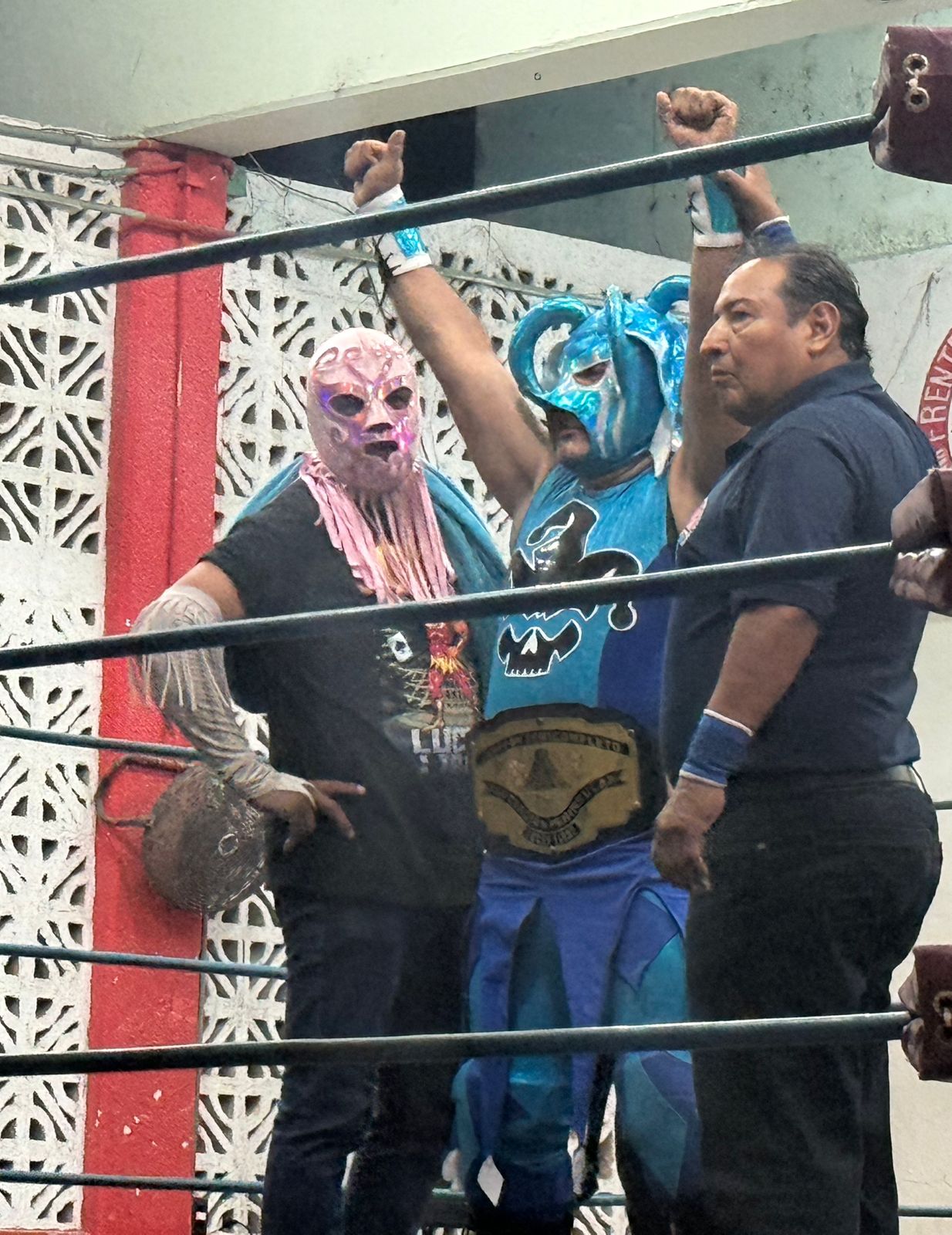 Cabe señalar que en esta lucha el comisionado en turno Armando “Taurus” Góngora, retiró momentáneamente al polémico refere Mr. Froy por considerarlo imparcial durante la lucha de campeonato, por lo que tuvo que venir del vestidor el experimentado y respetado Dark Palomo.