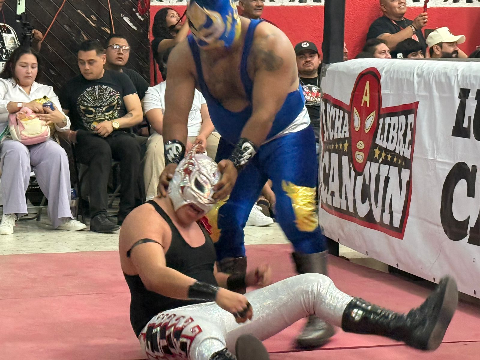 CANCÚN, Q. ROO a 23 de noviembre.- Ante una repleta Arena “Colonos” de la SM 89, los aficionados al pancracio en Cancún, disfrutaron de una noche sabatina inolvidable al vitorear en todo momento a sus luchadores favoritos de la función presentado por Lucha Libre Cancún (LLC), misma que fue estelarizada por la leyenda Dr Wagner Jr, hoy Rey Wagner, quien hizo equipo con el playense Invencible Jr y Karis La Momia, quienes vencieron a la facción loxal de los -Hijos de la Calle-, integrada por Corsario Jr, Tizoc y Rey Espartano.