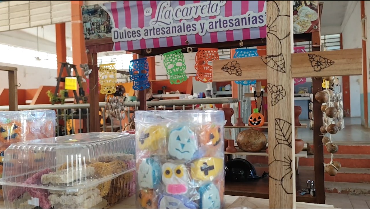 Además de los dulces, los puestos del mercado ofrecen velas, inciensos, cruces y demás artículos necesarios para las ofrendas, junto con los productos que se venden durante todo el año, como miel, chiles y salsas. “No quitamos de nuestra vista los productos de siempre; todo sigue estando en la mesa”, agregó.