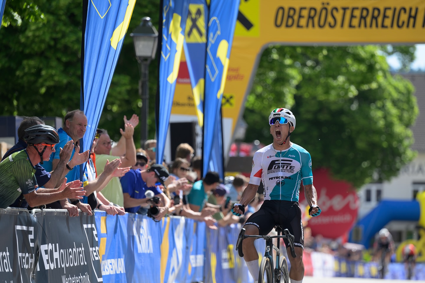 Sorti dans le final, Edgar David Cadena 🇲🇽 a remporté la troisième étape du #OberösterreichRundfahrt 🇦🇹 en résistant dans la bosse finale à Aaron Dockx 🇧🇪 et Bálint Feldhoffer 🇭🇺