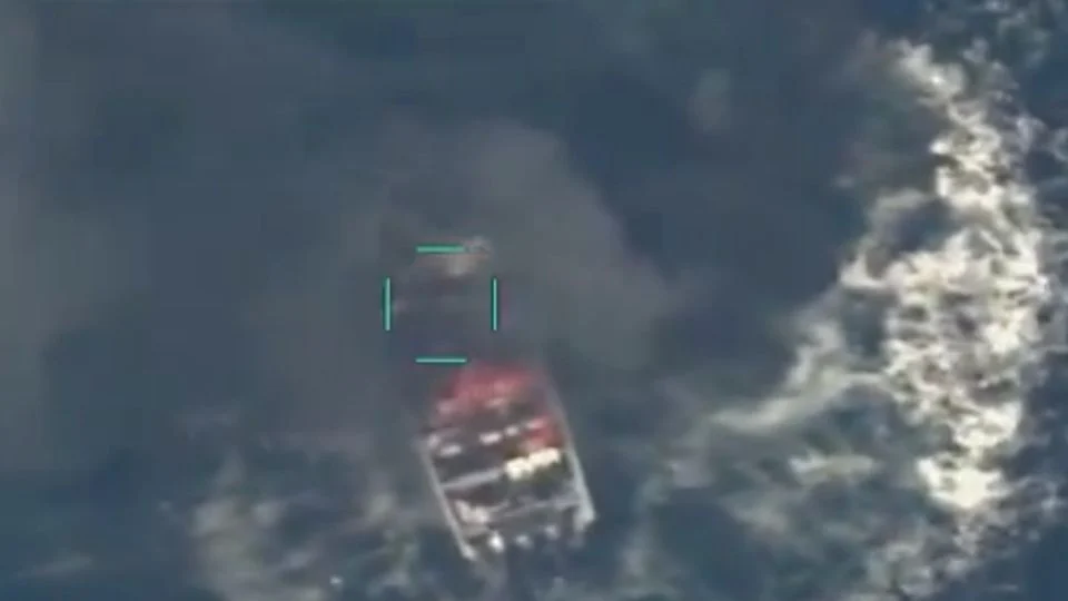 Las Fuerzas Armadas estadounidenses acompañaron la publicación del ataque con un video donde se observa a un buque en movimiento que resulta impactado.