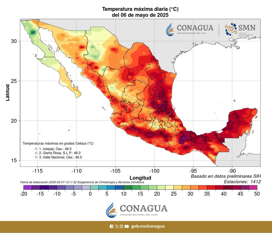 San Luis Potosí – Axtla de Terrazas alcanzó 46 °C (6 de mayo).