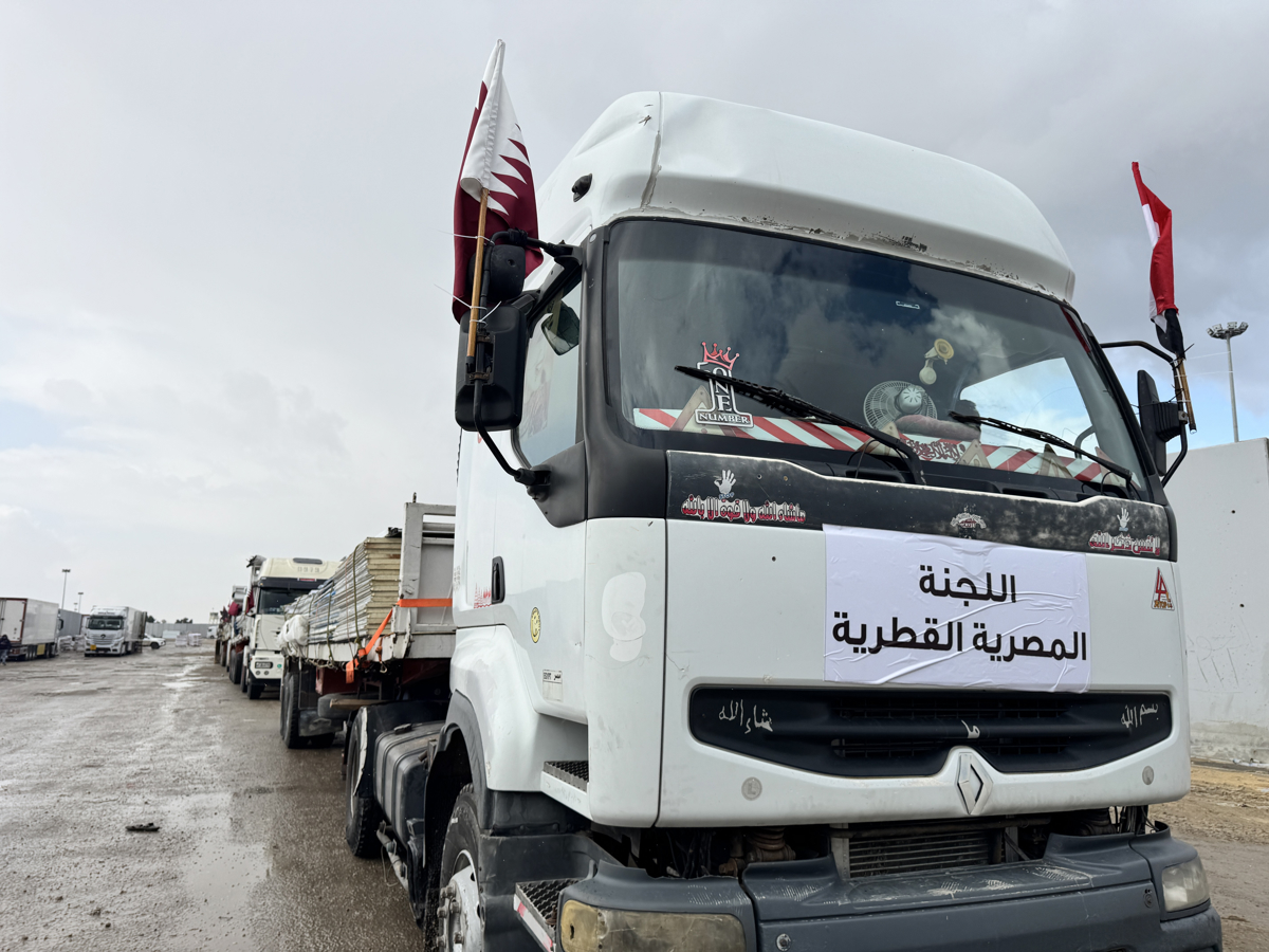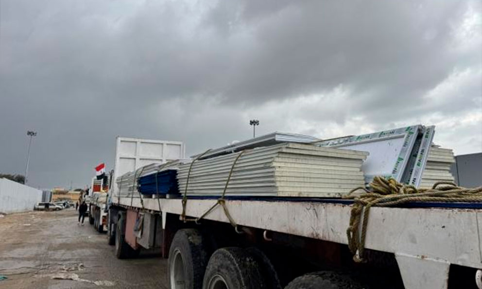 Un total de 15 casas móviles cargadas en cinco camiones cruzaron el paso fronterizo de Kerem Shalom, que conecta Egipto con Israel, para ser inspeccionados por las autoridades israelíes antes de ingresar en la Franja de Gaza, donde estas viviendas temporales serán ensambladas para alojar temporalmente a decenas de familias en el devastado enclave palestino.