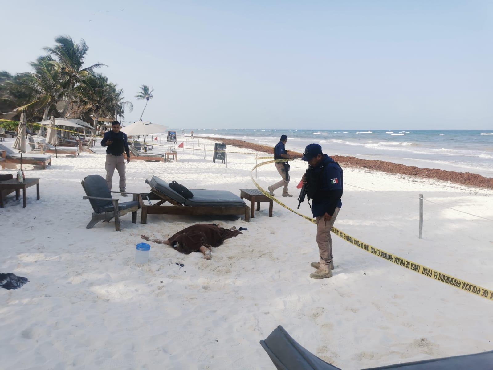 Al igual que en el caso anterior, la escena fue acordonada para la labor de los peritos, quienes encontraron múltiples casquillos percutidos. La víctima fue trasladada al SEMEFO y tampoco ha sido identificada hasta el momento. Por estos hechos la Fiscalía General del Estado emitió un comunicado en su redes sociales: La #FGEQuintanaRoo informa el inicio de una carpeta de investigación por el delito de homicidio calificado en agravio de una persona del sexo femenino, de nacionalidad mexicana, ocurrido en la zona de playa del municipio de Tulum.