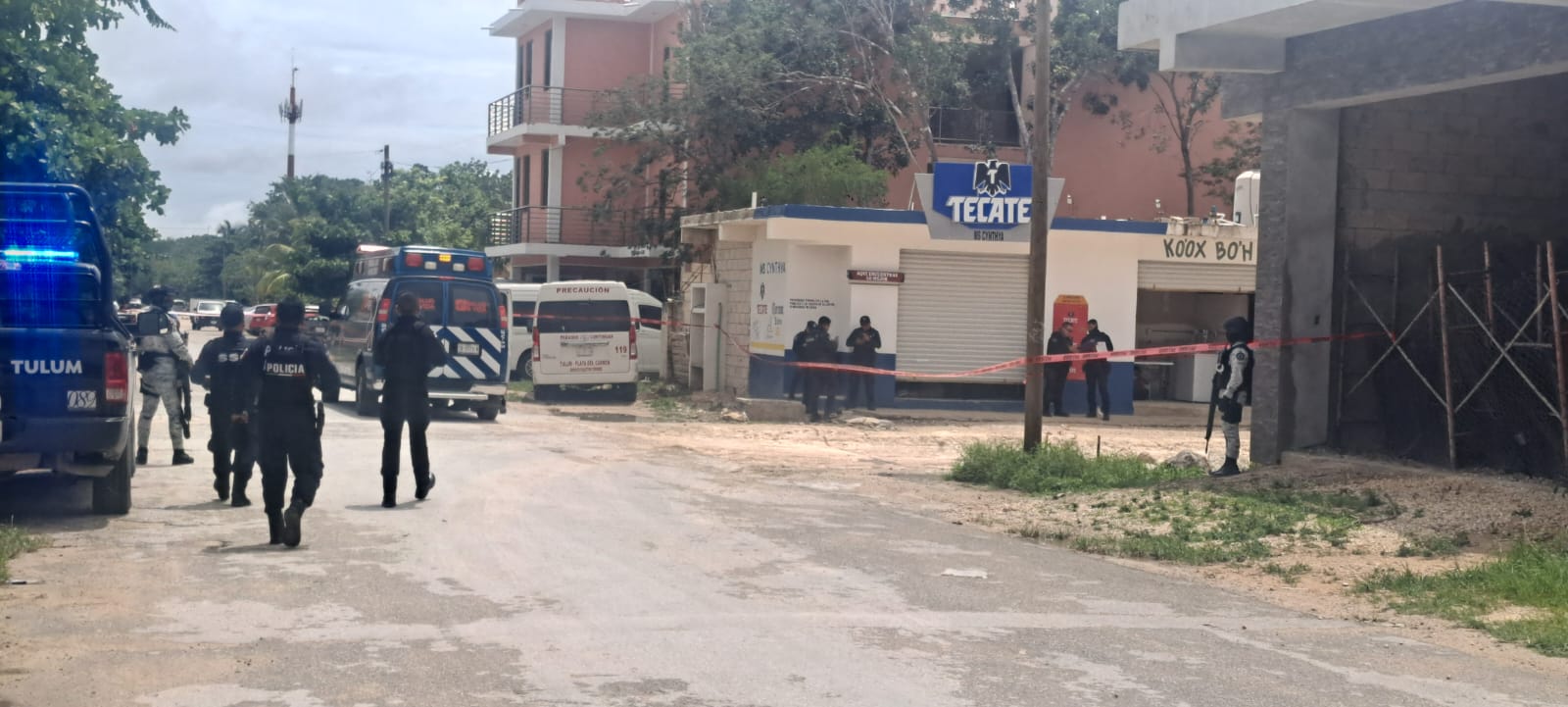 TULUM a 26 de junio.— Un hombre fue asesinado a balazos la tarde de este jueves al interior de una tienda SIX ubicada en el cruce de las calles Gladiolas y Tulipanes, en la colonia Yaax Tulum, lo que provocó una intensa movilización policiaca en la zona.
