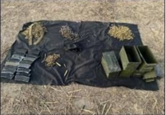 Se aseguraron 18 cargadores, 1,818 cartuchos de diversos calibres, 4 equipos de radiocomunicación, equipo táctico diverso, 8 chalecos porta placas, 5 pierneras y sustancias químicas para la elaboración de drogas sintéticas.
