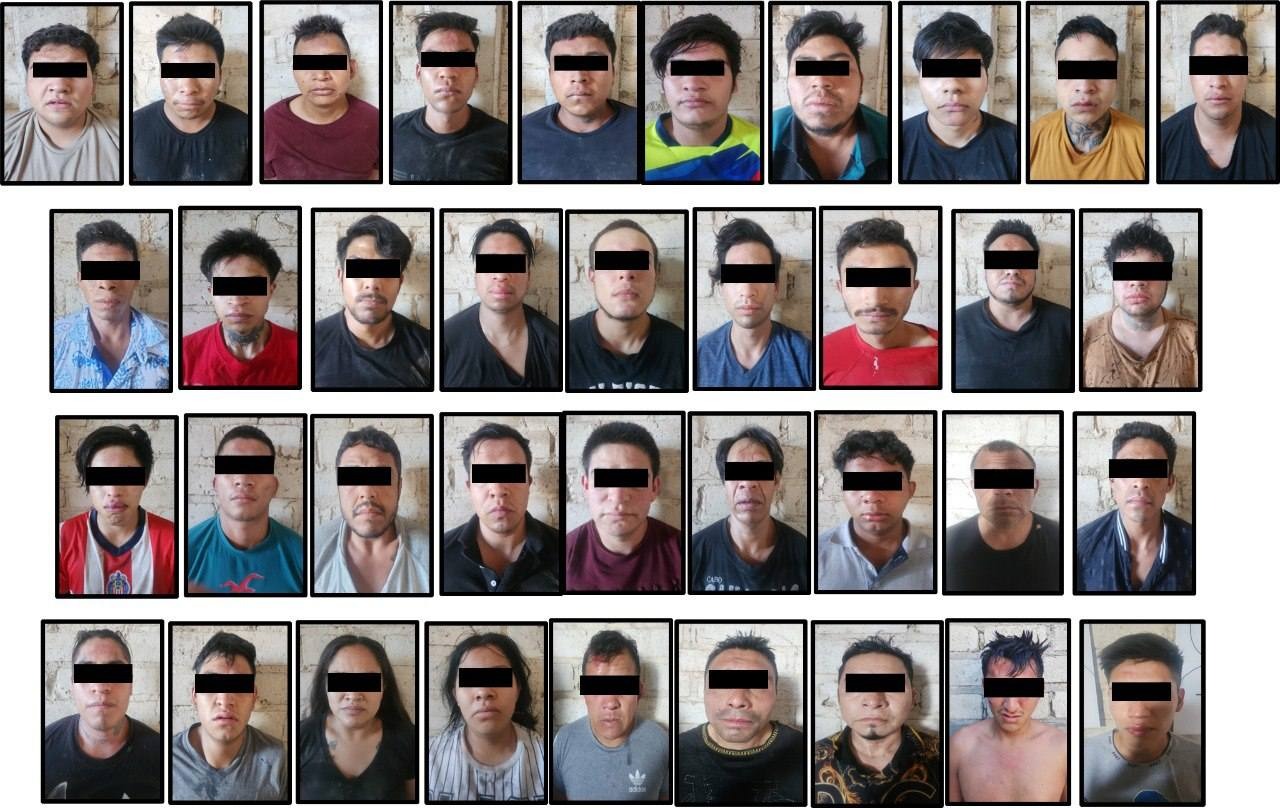 Personal del Ejercito Mexicano y la Guardia Nacional, localizaron a inmediaciones de la localidad La Vega, municipio de Teuchitlán, Jalisco, un campamento de adiestramiento perteneciente al Cártel Jalisco Nueva Generación, siendo detenidas en flagrancia delictiva a 37 personas.