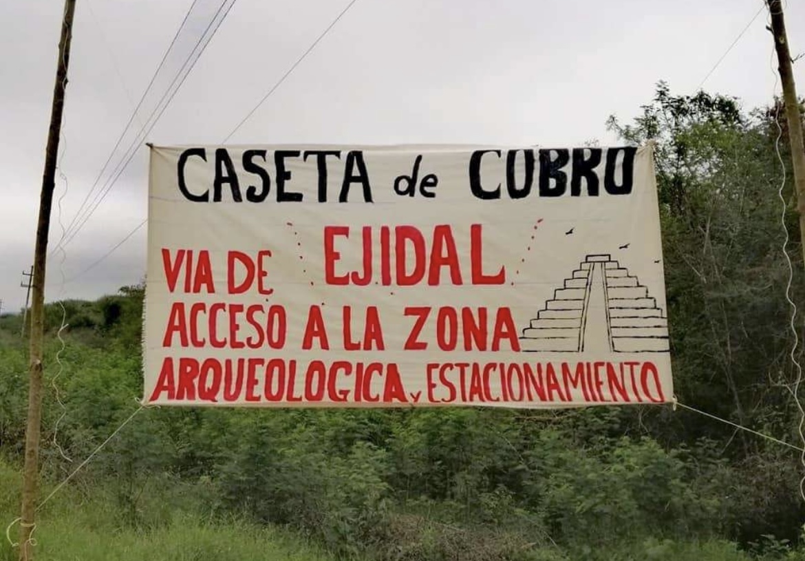 “La caseta de cobro se mantiene, porque es un acuerdo de asamblea y se lo hemos comentado a la gobernadora y a la secretaria de gobierno, de que al momento de que lleguemos a acuerdos, nosotros levantamos la caseta, la idea es que tanto el gobierno estatal como el federal se sienten con el ejido a entablar las condiciones para un libre tránsito y que podamos tener participación de lo que se recauda por el ingreso del turismo, porque las 300 hectáreas donde están las zonas arqueológicas le pertenecen al ejido y nunca se nos ha indemnizado.”
