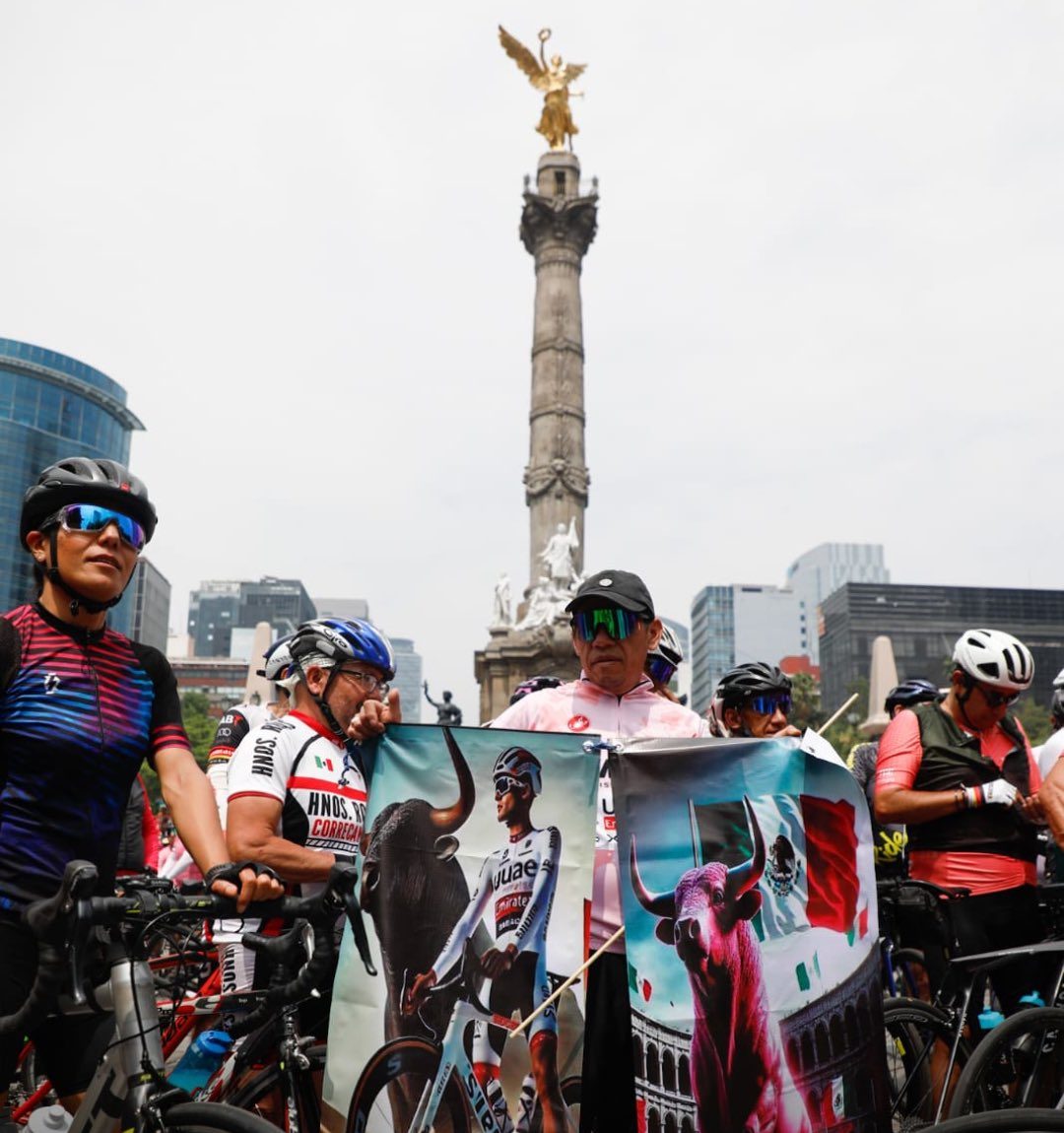 🚴 En el marco del Paseo Dominical, cientos de ciclistas se congregaron alrededor del Ángel de la Independencia para mostrar su apoyo a Isaac del Toro.