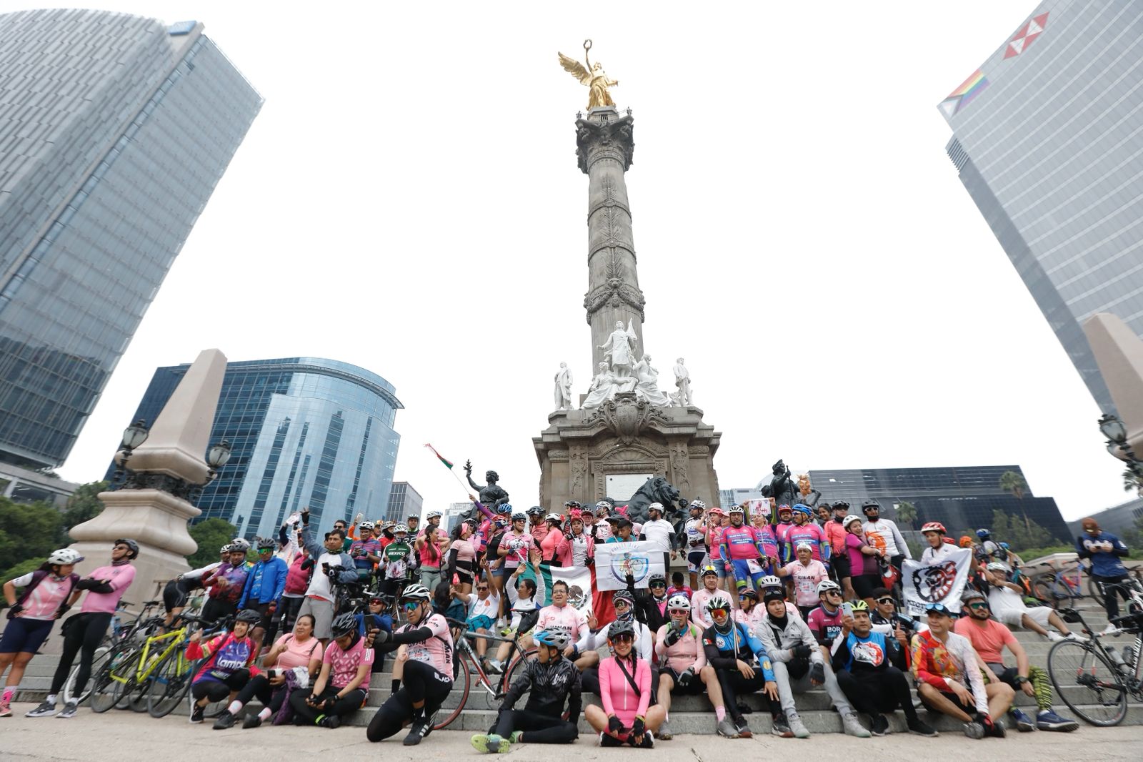 Los primeros pedalistas llegaron poco antes de las diez de la mañana; poco a poco, el Ángel recibió a cientos más quienes arribaron tocando bocinas y portando prendas rosas.