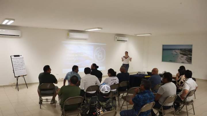 Progreso, Yuc., a 10 de noviembre de 2024 La dirección de pesca del ayuntamiento de Progreso en colaboración con el Instituto Mexicano de Conservación Marina (IMCM) realizó un taller sobre el cuidado de los mares con el objetivo de sensibilizar y capacitar autoridades locales, actores clave en la protección de estos ecosistemas de nuestras costas.