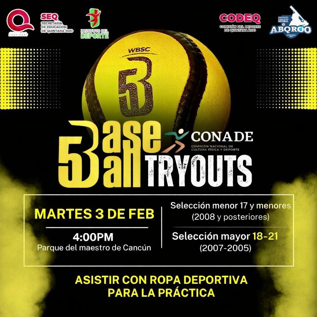 Debido a la cercanía de las fechas de las eliminatorias regionales de este deporte rumbo a las Olimpiadas Nacionales CONADE 2026, la AEBSQROO invita a jóvenes de ambos sexos a los Tryouts que se realizarán el martes 3 de febrero en el parque “Del Maestro”, para las categorías Juvenil Mayor y Juvenil Menor