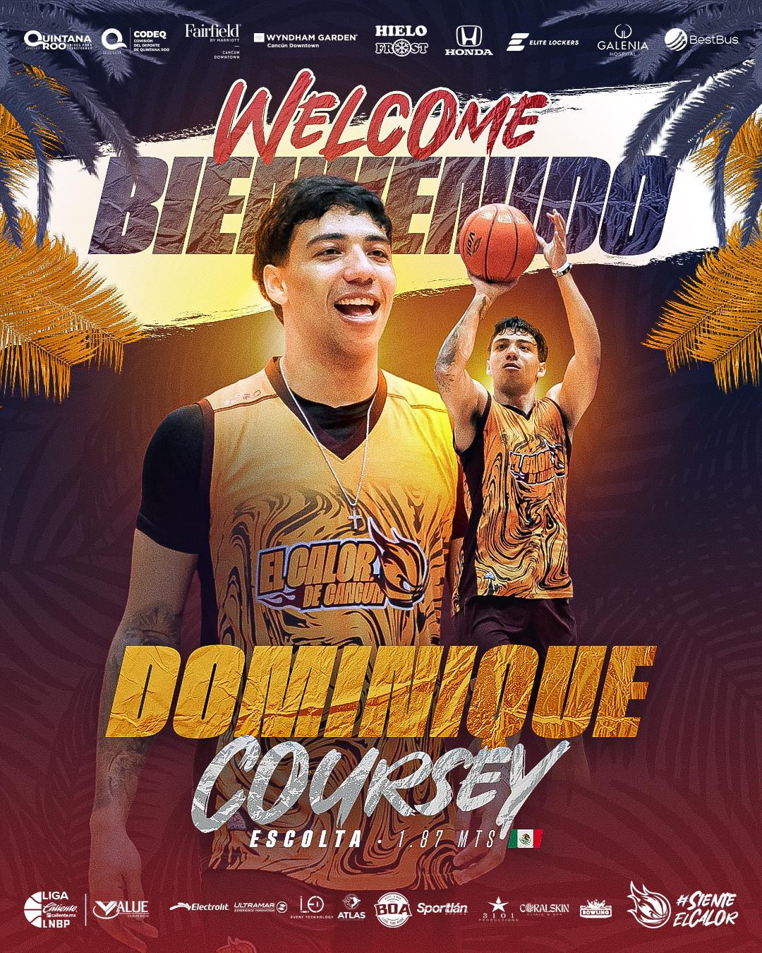 De igual manera, quien también será un nuevo rostro con El Calor de Cancún, es el joven talento Dominique Coursey Ibarra, quien juega como alero, nacido en Culiacán, Sinaloa; hace 23 años, a la par de medir 1.87 metros de altura.