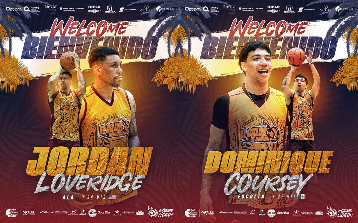 Los basquetbolistas presentados este martes a través de las redes sociales de El Calor, son el experimentado ala nacido en los Estados Unidos, Jordan Loveridge, quien durante varios años defendió los colores de los Astros de Jalisco; mientras que el otro es el oriundo de Culiacán, Sinaloa; Dominique Coursey.
