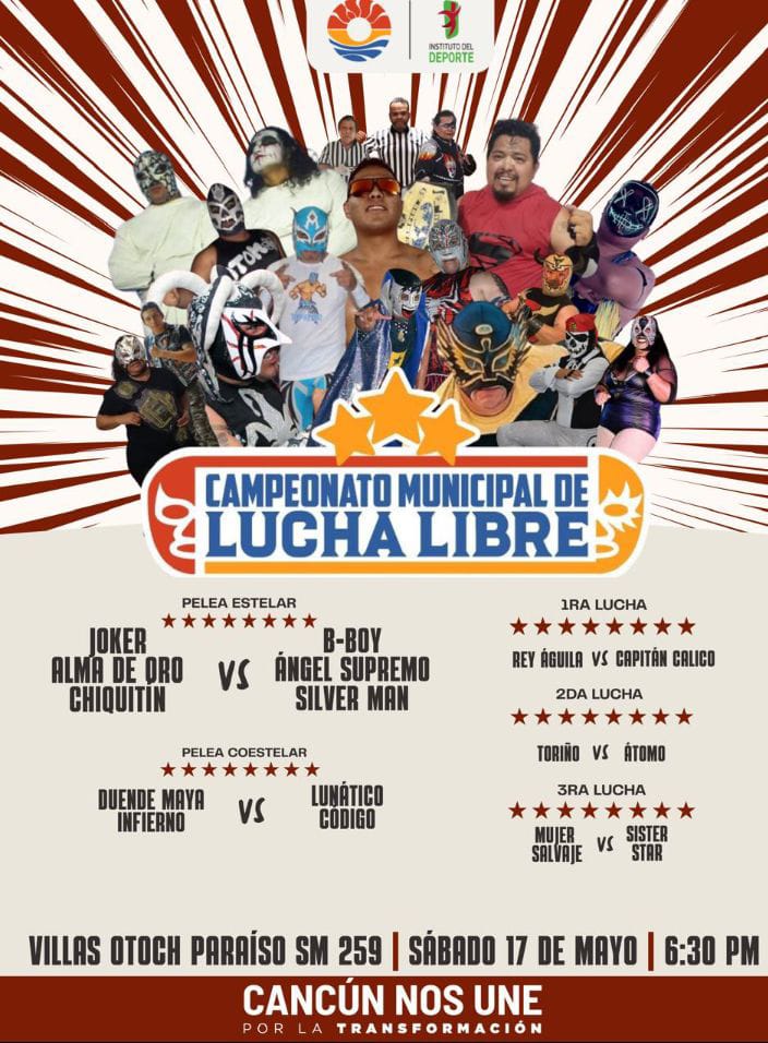 Mientras que la lucha estelar de la tercera eliminatoria del Campeonato Municipal de Lucha Libre en Villas Otoch Paraíso, será protagonizada por la facción de los “Maestros de la Fantasía” con Jocker, Alma de Oro y Chikitín, quienes tendrán como rivales a la tercia de los “Caribe Powers” de B-Boy, Ángel Supremo y Silver Man.