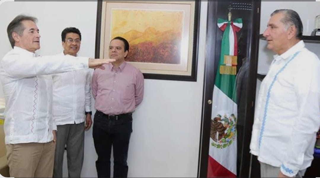 Ahí están las fotos del 11 de diciembre de 2019, cuando Adán Augusto lo recibe cálidamente en el cargo para el cual lo ha invitado.