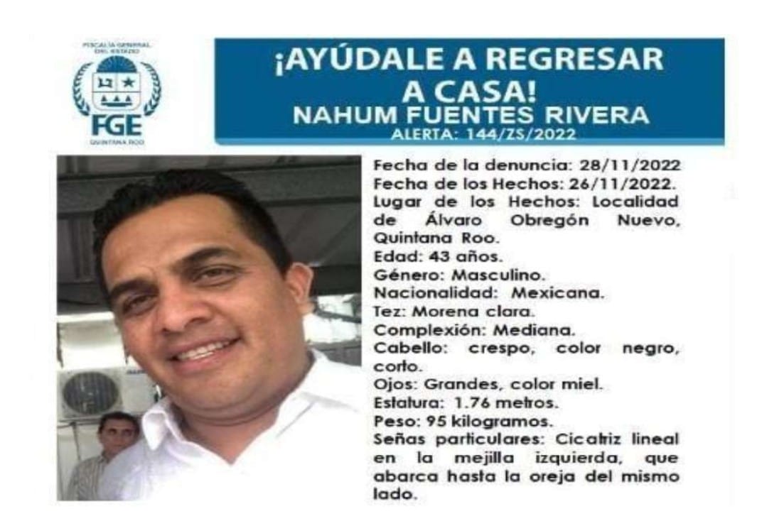 “El Cacho” Fuentes. al momento de ser secuestrado contaba con 43 años y fue “desaparecido” por un comando armado en el poblado de Álvaro Obregón Nuevo, en el municipio de Othón P. Blanco según se asienta en reportes de autoridades militares.