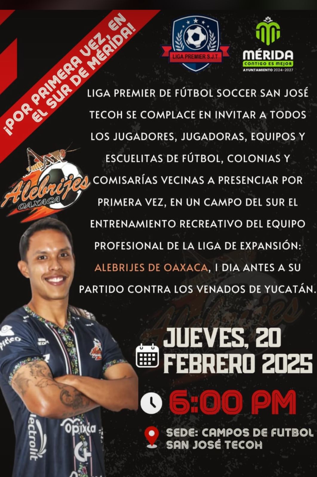 • Por primera vez el sur de Mérida será sede del entrenamiento de un equipo de fútbol profesional, el cual serán los Alebrijes de Oaxaca quienes llegan para demostrar sus dotes futbolísticos ante la gente de dicha zona