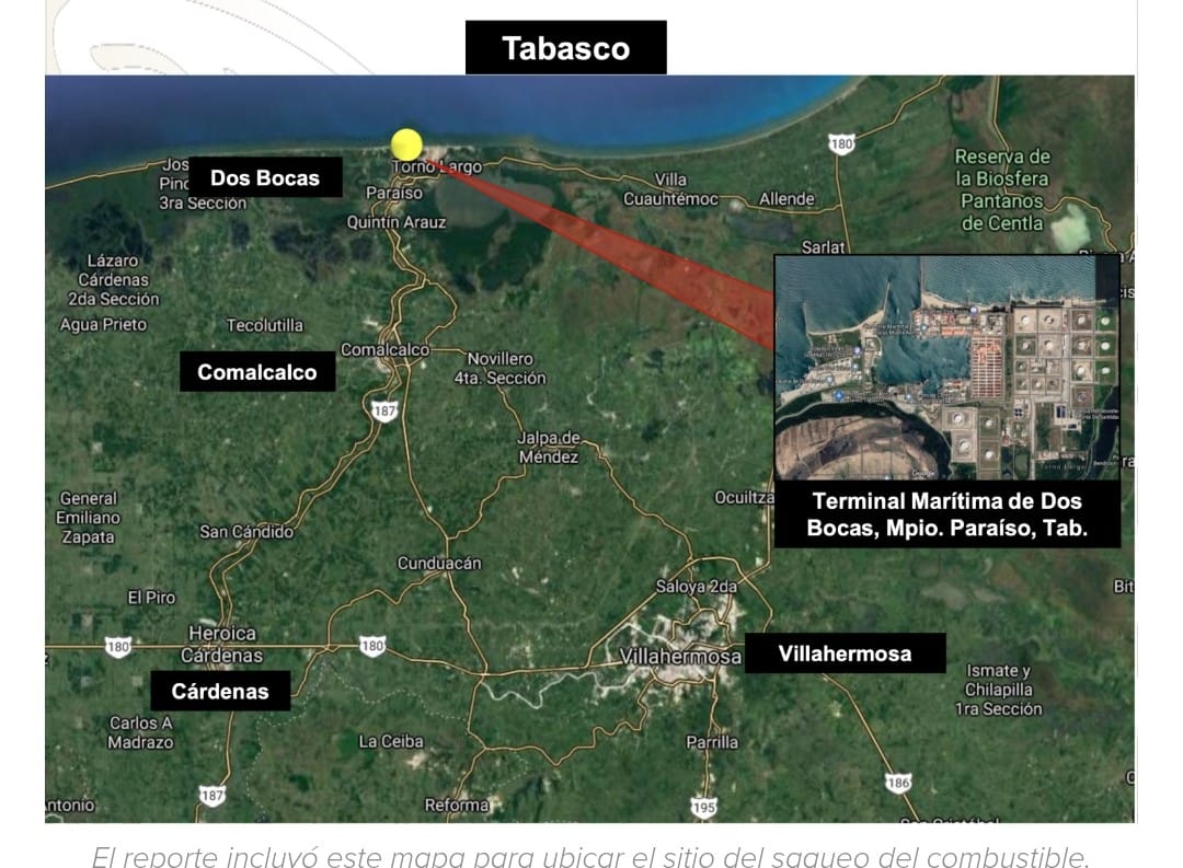 Incluso, el reporte menciona que las operaciones de esos traficantes en Dos Bocas habían iniciado desde enero de 2020, cuando se ordenó ingresar al puerto tres pipas de 30 mil litros cada una “a fin de que fueran cargadas con combustible ilícito del barco denominado Chirón”.