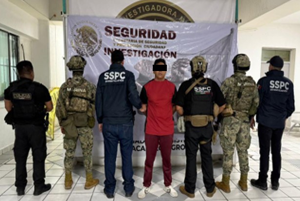 -En Acapulco, elementos del Ejército Mexicano, Semar, Fiscalía del Estado y Secretaría de Seguridad y Protección Ciudadana (SSPC), detuvieron a David Roberto “N”, jefe de una célula delictiva, acusado por el delito de homicidio y tentativa de homicidio. El detenido es señalado como autor material del multihomicidio ocurrido el pasado 4 de noviembre en la localidad de Tres Palos, donde cinco personas murieron al interior de un inmueble y dos más fueron lesionadas.