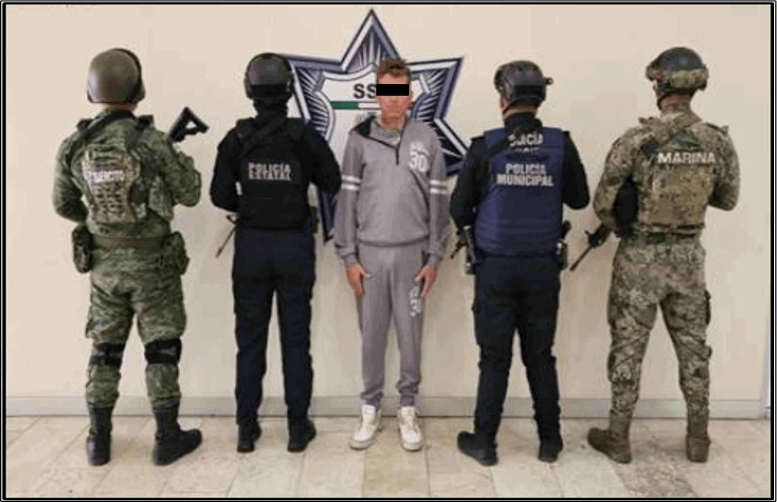 -En Atizapán de Zaragoza, elementos de la Semar y Fiscalía General de Justicia del Estado de México (FGJEM) detuvieron a una persona por el delito de homicidio, en la colonia Profesor Cristóbal Higuera. La persona fue trasladada a un Centro Penitenciario de Reinserción Social en San Pedro Barrientos, municipio de Tlanepantla de Baz.