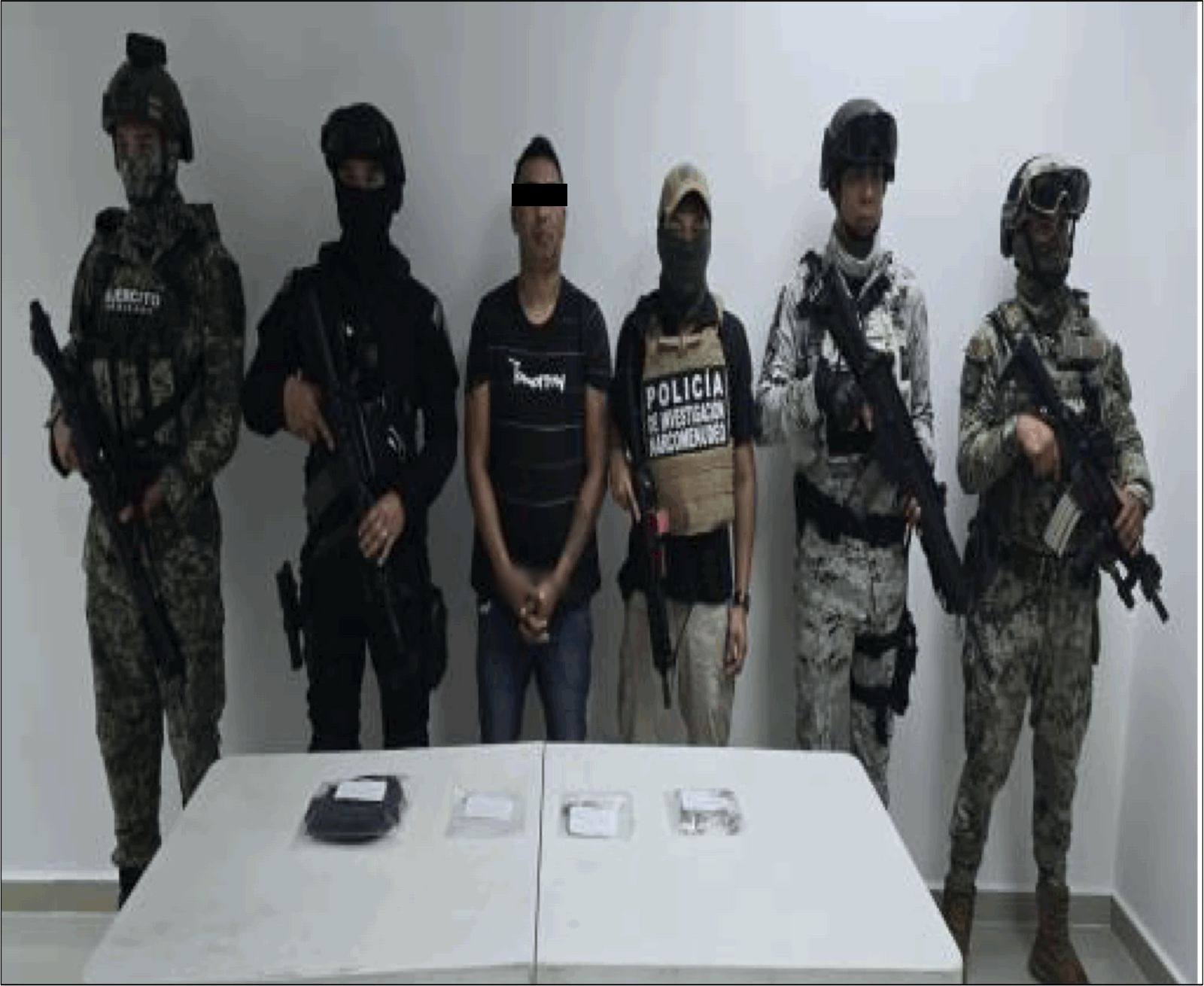 -En Cajeme, durante el desarrollo de la “Operación Sable Cajeme”, elementos del Ejército Mexicano, Semar, FGR y Agencia Ministerial de Investigación Criminal (AMIC), en dos eventos, detuvieron a un hombre, aseguraron un envoltorio de marihuana, 33 dosis de cristal, un arma larga, un cargador, además de un vehículo y un chaleco balístico, en las colonias Russo Voguel y Sostenes Valenzuela.