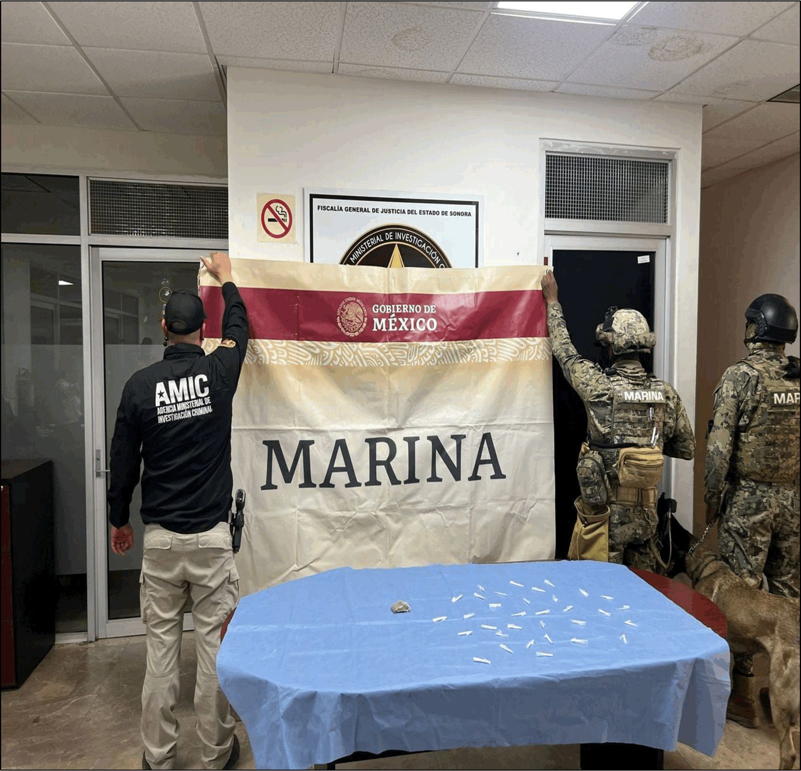 -En Mazatlán, en inmediaciones del poblado El Pozole y las colonias Francisco I. Madero y Francisco Villa, derivado de información de inteligencia, elementos de la Semar, durante tres eventos, detuvieron a cinco personas, asegurando una bolsa con 428 dosis de marihuana, 119 dosis de cocaína, 2,891 dosis de metanfetamina, tres cargadores, tres cartuchos, tres vehículos, uno de ellos con vidrios blindados, 15 máquinas tragamonedas y equipo táctico.