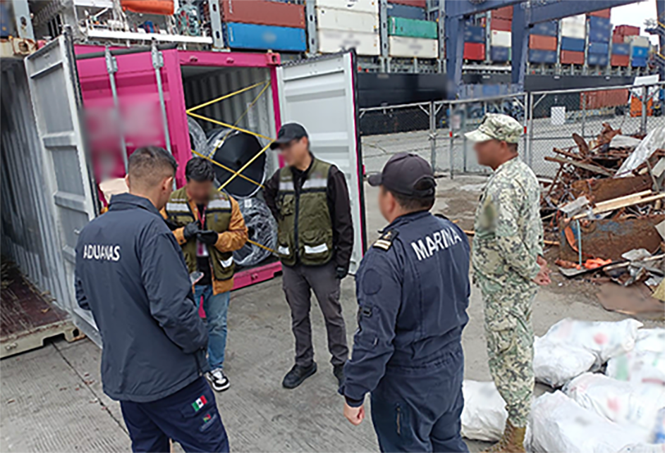 -En Ensenada, elementos de la Secretaría de Marina (Semar), Aduanas, Procuraduría Federal de Protección al Ambiente (Profepa) y Comisión Nacional de Acuacultura y Pesca (Conapesca) aseguraron un contenedor donde hallaron en su interior 2,433 kilos de aleta de tiburón martillo, en las instalaciones de la aduana.