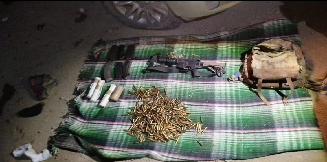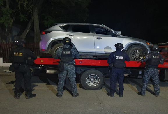 -En Mexicali, elementos de la Guardia Nacional (GN), Ejército Mexicano, Policía Estatal y Municipal localizaron dos vehículos en un camino de terracería, aseguraron un arma larga, 10 cargadores, 291 cartuchos y un chaleco táctico y dos vehículos.