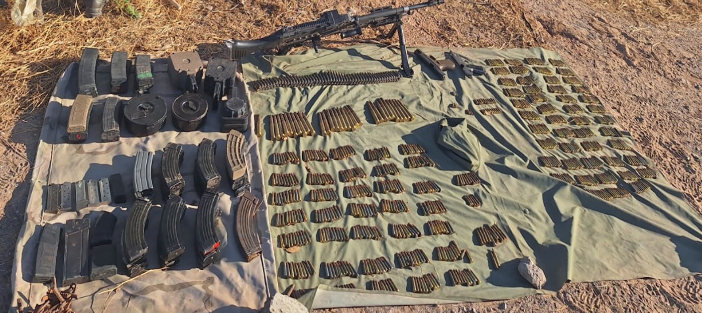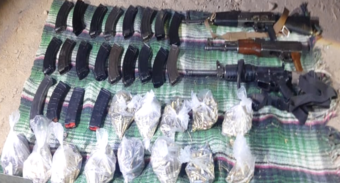 -En Caborca, en el poblado Siempre Viva, elementos de GN y Ejército Mexicano localizaron un costal en el que aseguraron una ametralladora, dos armas cortas, 50 cargadores y 971 cartuchos.