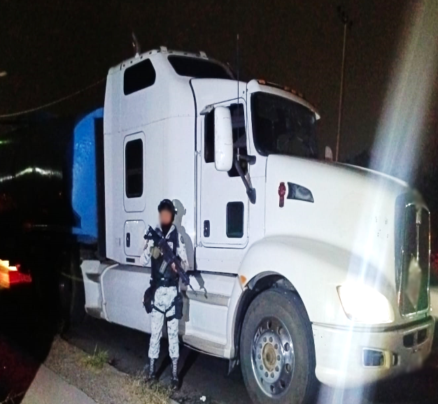 -En otra acción en Ensenada, en el poblado El Sauzal, elementos de Semar, Ejército Mexicano y GN detuvieron a una persona y aseguraron un tractocamión acoplado a una cisterna con 43,000 litros de gasolina, el cual no contaba con la documentación que acreditara su legal procedencia.