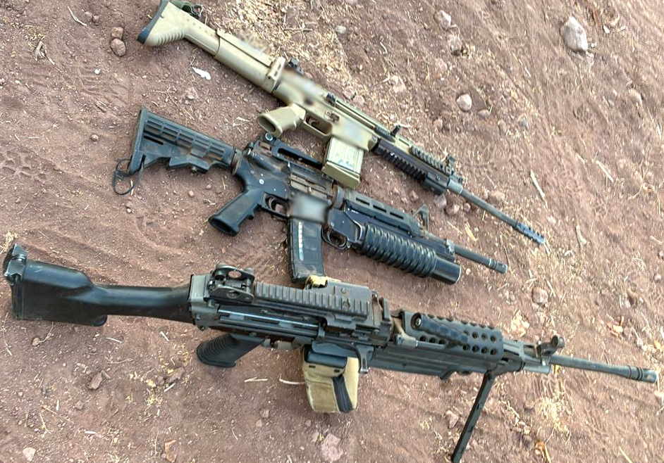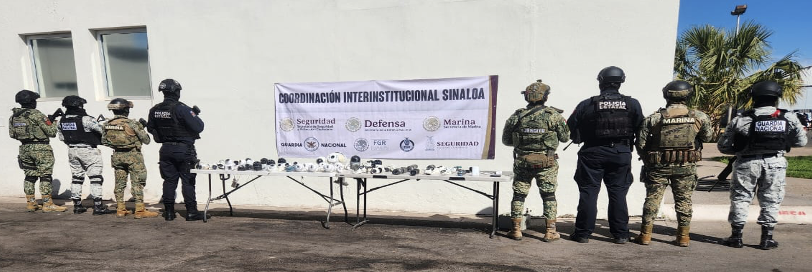 -En Elota, elementos del Ejército Mexicano aseguraron una ametralladora, dos armas largas, un aditamento lanzagranadas, cinco granadas y dos granadas.