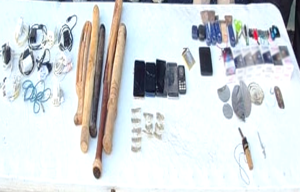 -En Tenosique, elementos de GN, Ejército Mexicano, Policía Estatal y del Sistema de Administración Penitenciario realizaron una inspección al Centro de Readaptación Social No. 4, aseguraron dosis de marihuana, cinco celulares, 16 cargadores para celulares, 14 cajetillas de cigarros, 12 memorias USB, dos auriculares inalámbricos, cinco espátulas, dos objetos punzocortantes y cinco palos de madera.