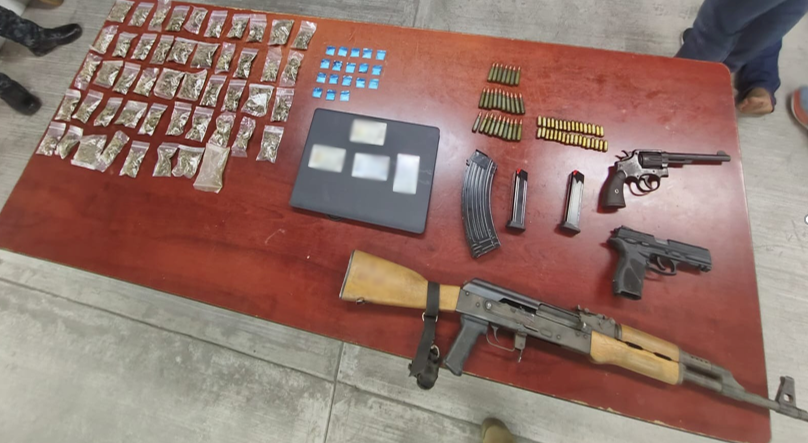 -En Tuxtla Gutiérrez, elementos del Ejército Mexicano, GN, Fiscalía Estatal, Secretaría de Seguridad y Protección Ciudadana (SSPC), Fuerza de Reacción Inmediata PAKAL y Policía Municipal detuvieron a cinco personas, aseguraron un arma larga, dos armas cortas, tres cargadores, 60 cartuchos, diversas dosis de drogas y una laptop.