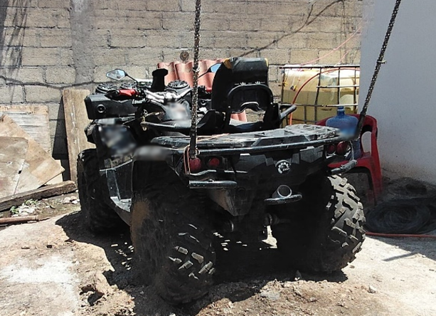 -En Tetla de Solidaridad, en la zona industrial Xicohténcatl, elementos de Semar y FGR, durante un cateo, aseguraron 17 cuadritanques con aproximadamente 14,500 litros de hidrocarburo, una pipa y una motocicleta.