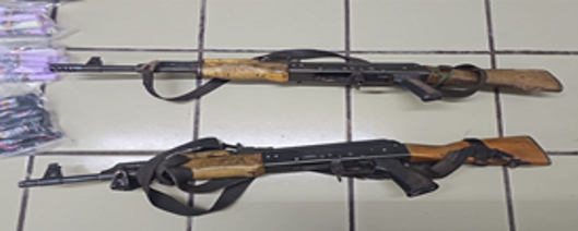 -En Valle de Santiago, elementos de GN, Ejército Mexicano y Policía Estatal detuvieron a cuatro personas, les aseguraron nueve armas largas, dos armas cortas, dos tubos cañón, 10 cargadores, 413 cartuchos, dosis de marihuana, 11 chalecos tácticos, tres cascos balísticos, tres motocicletas y tres vehículos.