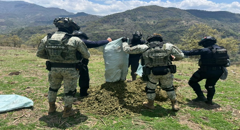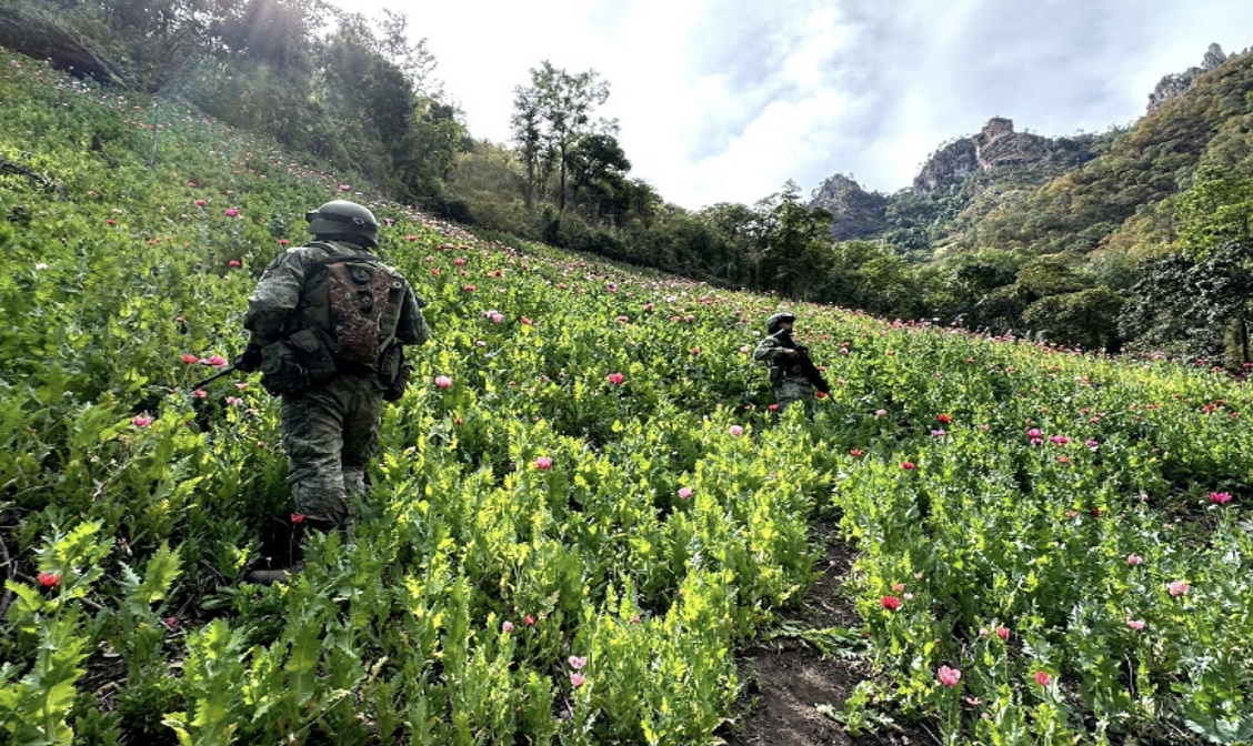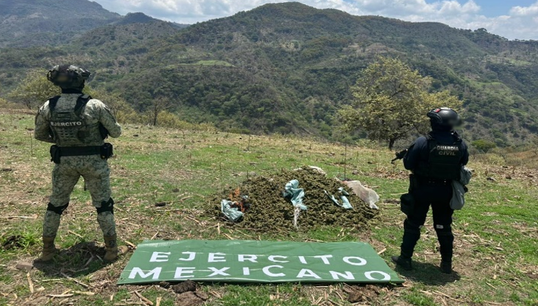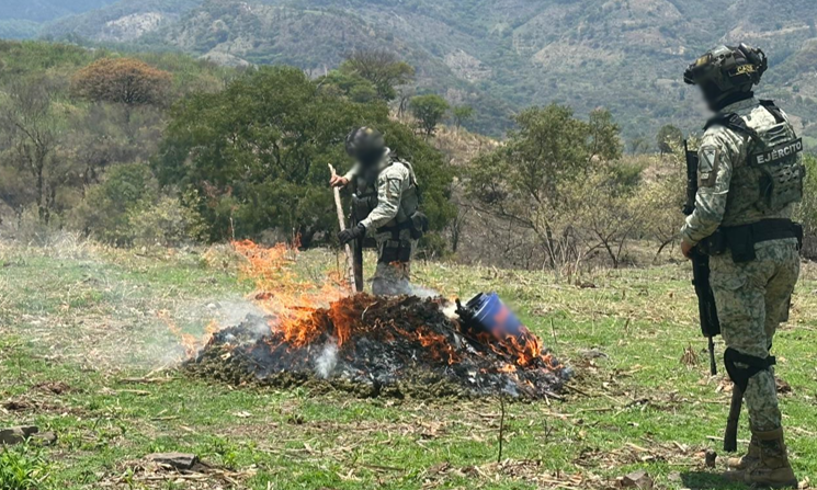 En Chihuahua, Sinaloa, Durango y Guerrero, elementos del Ejército Mexicano destruyeron 94 plantíos de amapola en siete hectáreas y 37 plantíos de marihuana en cuatro hectáreas.