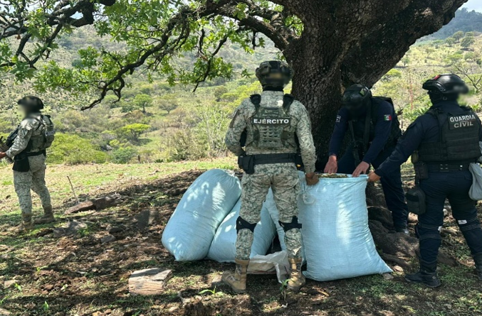 -En Charo, elementos del Ejército Mexicano y Policía Estatal, en un camino de terracería, localizaron varios costales entre la maleza, aseguraron 70 kilos de marihuana.