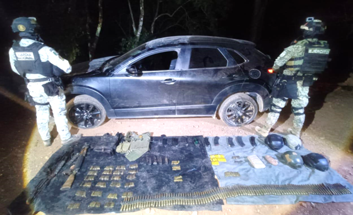 -En Guachochi, elementos de GN, Ejército Mexicano y Policía Estatal localizaron un vehículo, aseguraron tres armas largas, 21 cargadores, 1,510 cartuchos y seis artefactos explosivos improvisados.