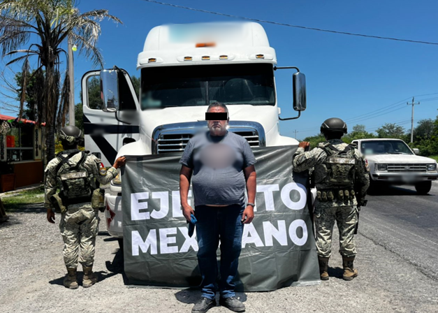 -En Hidalgo, elementos del Ejército Mexicano, en la carretera a Ciudad Victoria, revisaron dos camiones de carga, detuvieron a dos hombres, asegurándoles dos tractocamiones, tres semirremolques, 48,000 litros de aceite lubricante básico y 70,000 litros de diésel.