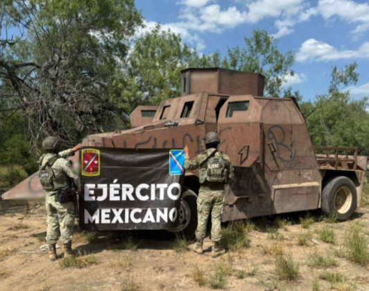 -En Camargo, elementos del Ejército Mexicano en un camino de terracería, localizaron y aseguraron tres vehículos con blindaje artesanal.