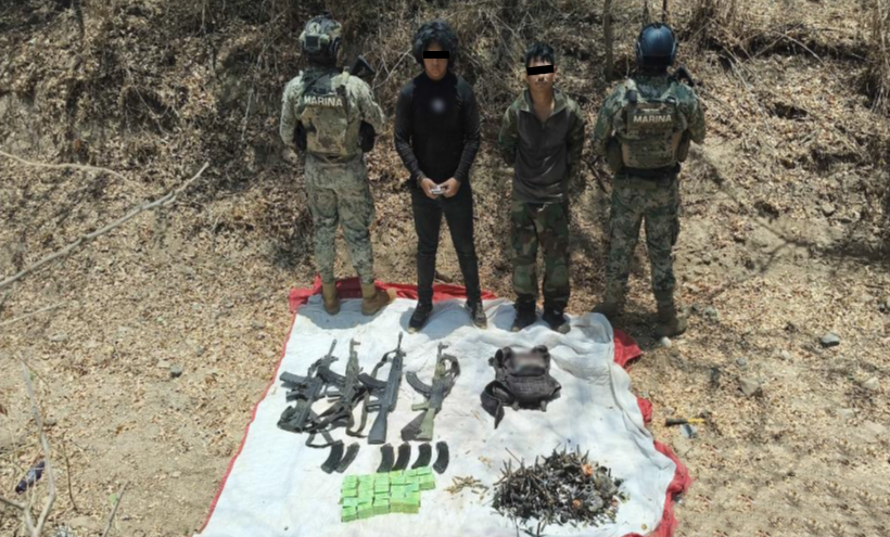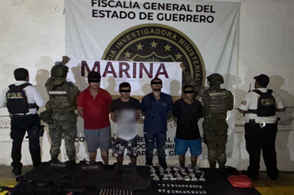 -También en Acapulco, en la colonia San Agustín, elementos de Semar detuvieron a cuatro personas con un arma larga, 35 cartuchos útiles, un cargador, tres chalecos tácticos, 20 dosis de marihuana y 24 dosis de metanfetamina.