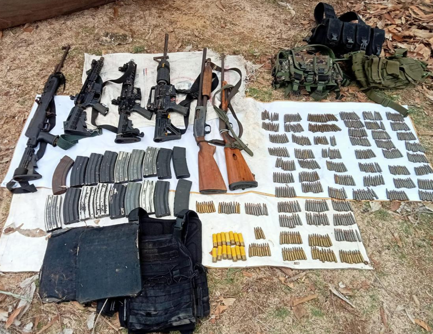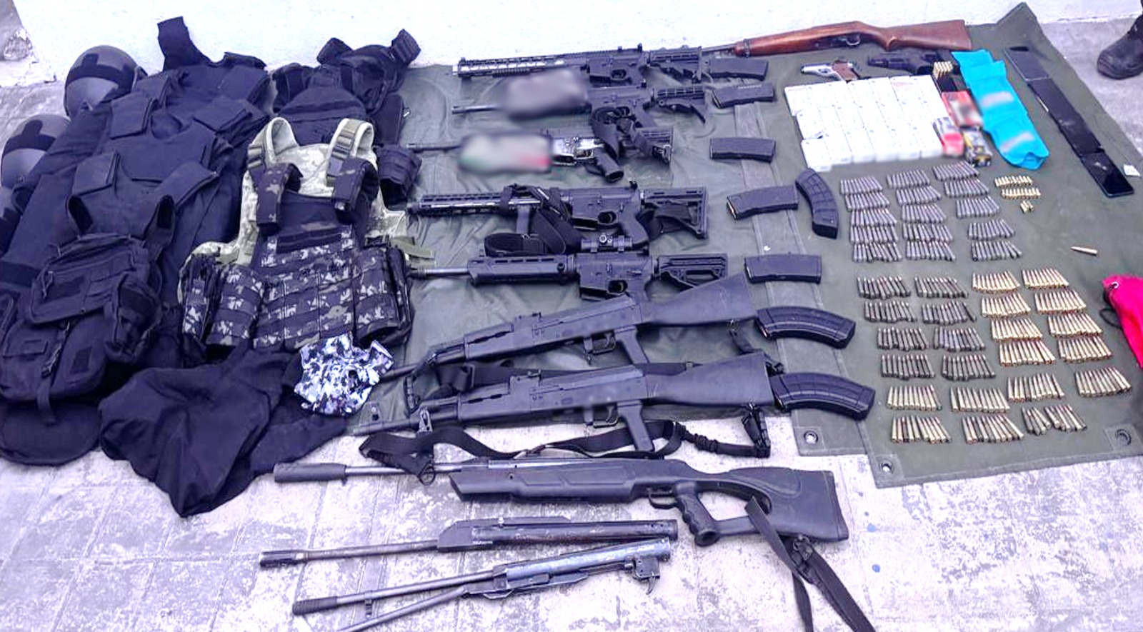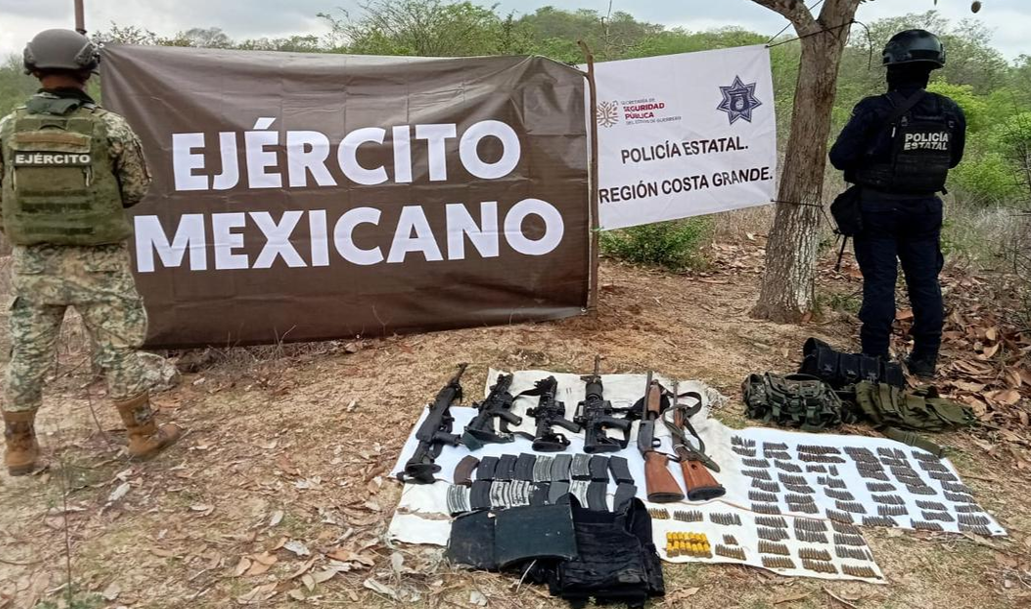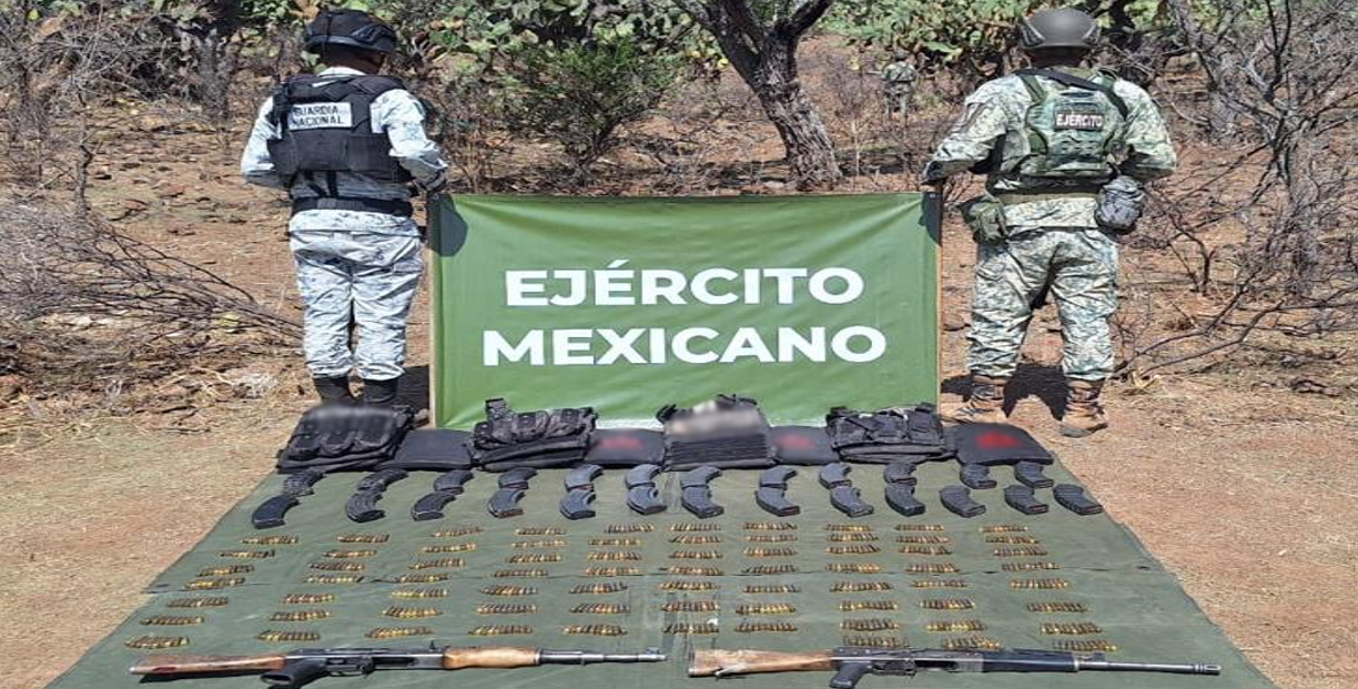 -En La Unión, elementos del Ejército Mexicano y Policía Estatal aseguraron seis armas largas, 18 cargadores, 663 cartuchos, un chaleco balístico, dos placas balísticas y tres chalecos tácticos.