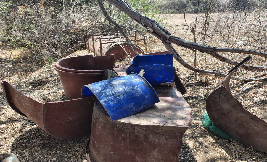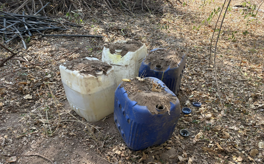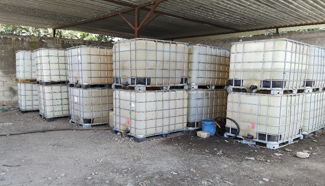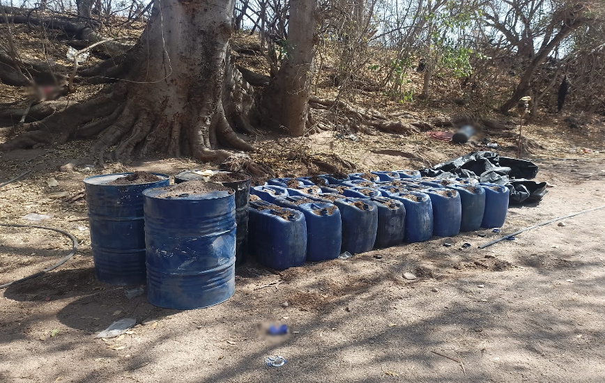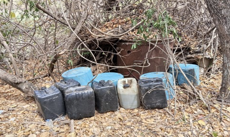 -En Tula, elementos de GN, Ejército Mexicano y Fiscalía Estatal catearon dos inmuebles, aseguraron una retroexcavadora, dos vehículos, una cuatrimoto, 38 contenedores y 35,450 litros de gasolina.
