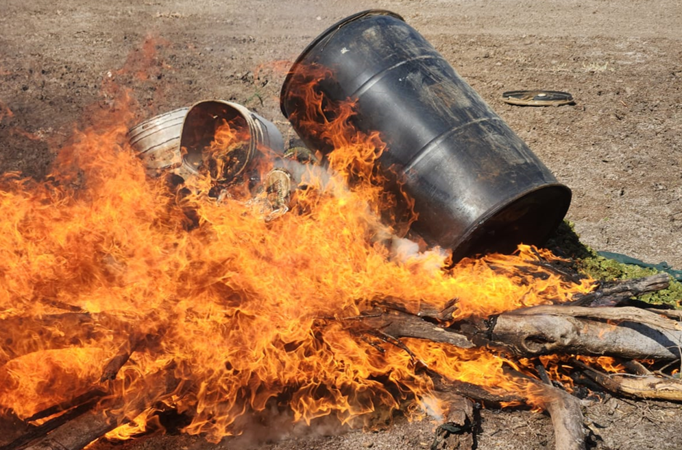 En Culiacán, Sinaloa, en los poblados Plan de Oriente, San José, El Varejonal, El Vizcaino, Los Vasitos, La Mora y Juan Aldama, elementos del Ejército Mexicano aseguraron un área de concentración de droga e inhabilitaron ocho áreas de concentración de material diverso para la elaboración de metanfetamina, aseguraron 43 kilos de metanfetamina, un reactor de síntesis orgánica y 3,040 litros de sustancias químicas.