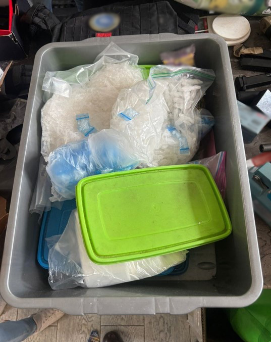 En Baja California, elementos de GN detuvieron a un hombre, aseguraron 122 paquetes con metanfetamina con un peso de 1,174 kilos y 115 paquetes con cocaína con un peso de 724 kilos. La afectación económica a la delincuencia organizada por la droga asegurada es de 477.3 millones de pesos