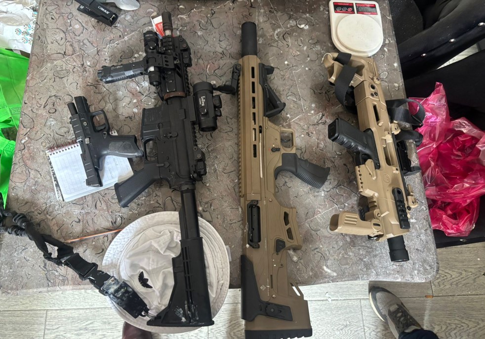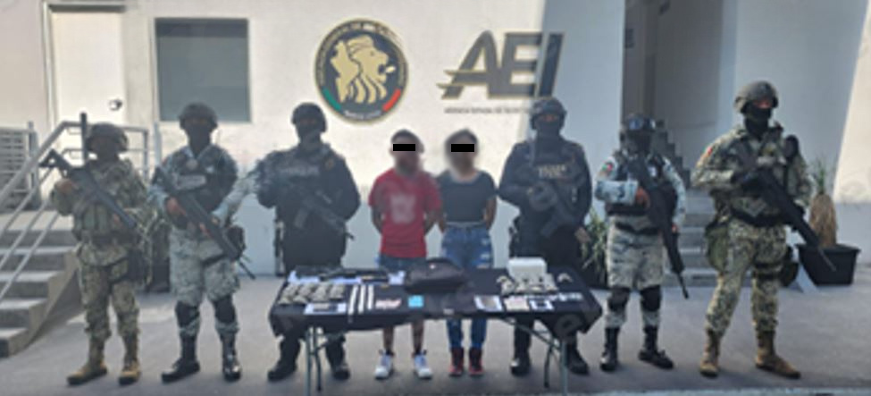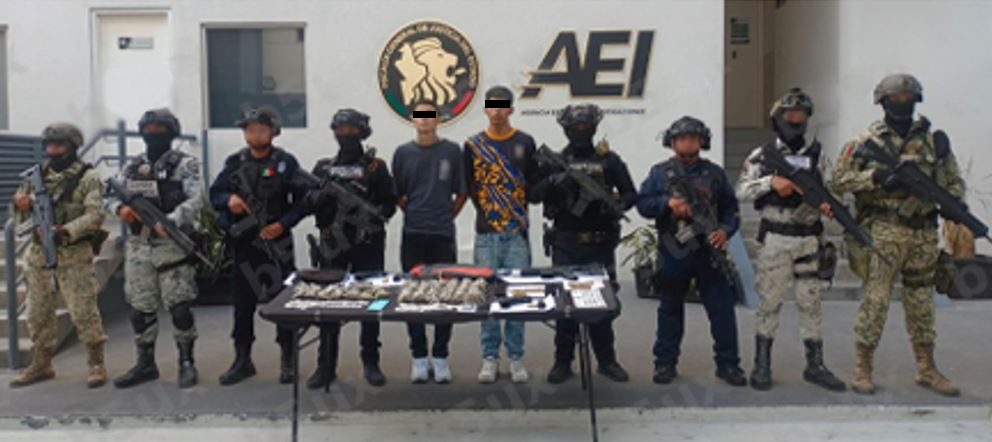-En Apodaca, elementos de GN, Ejército Mexicano y Policía Estatal detuvieron a cinco personas, entre ellas tres menores de edad, les aseguraron dos armas cortas, un arma larga, cuatro cargadores, 66 cartuchos y diversas dosis de drogas.