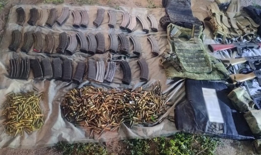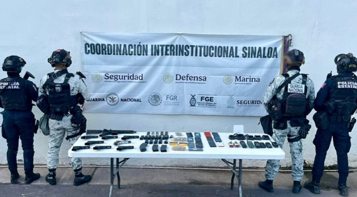 -En Concordia, en el poblado Pánuco, elementos del Ejército Mexicano, al atender un reporte, aseguraron cinco armas largas, 27 cargadores, 378 cartuchos y equipo táctico.