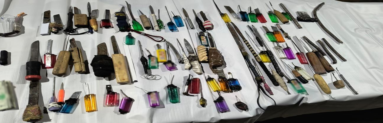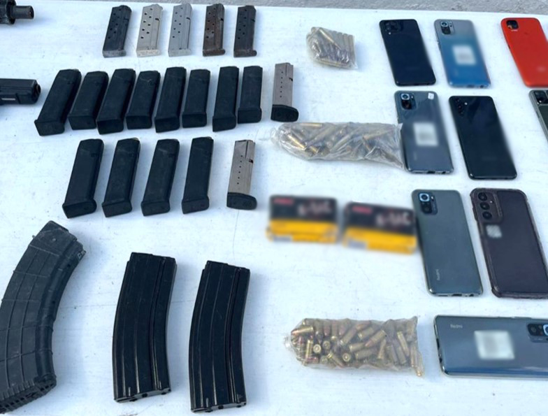 -También en Culiacán, elementos de GN, Ejército Mexicano, Semar, SSPC, Fiscalía y Policía Estatal realizaron una inspección a un módulo del Centro Penitenciario Aguaruto, aseguraron un arma larga, ocho armas cortas, 22 cargadores, 355 cartuchos.